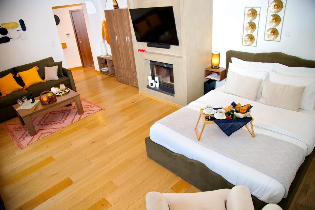 Η κράτηση πραγματοποιείται με τη μορφή αιτήματος. Συμπληρώνετε τη φόρμα με τα στοιχεία σας, τη σουίτα που επιλέξατε και τις ημερομηνίες που επιθυμείτε.